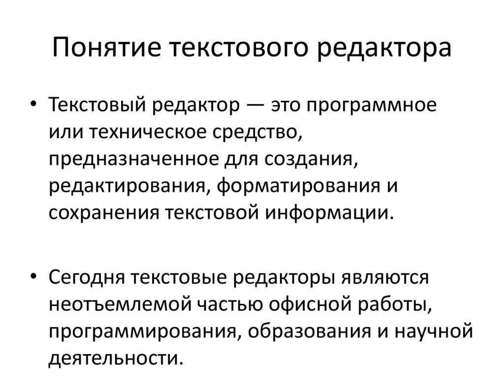 Понятие текстового редактора• Текстовый редактор — это программное