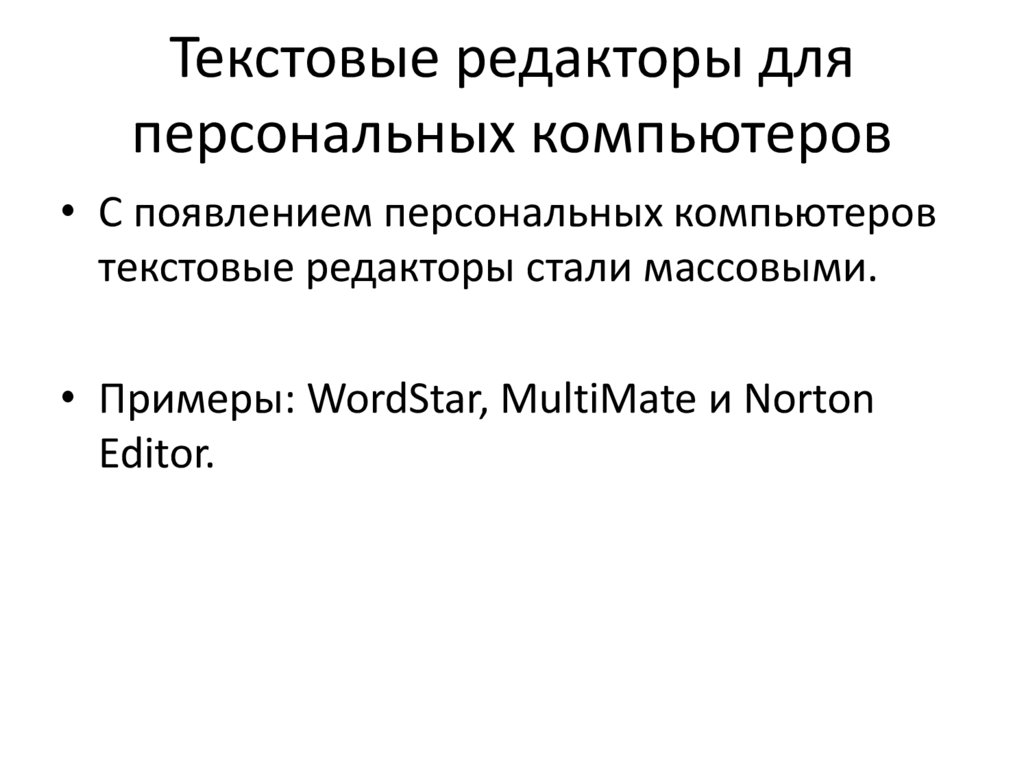 • Примеры: WordStar, MultiMate и Norton