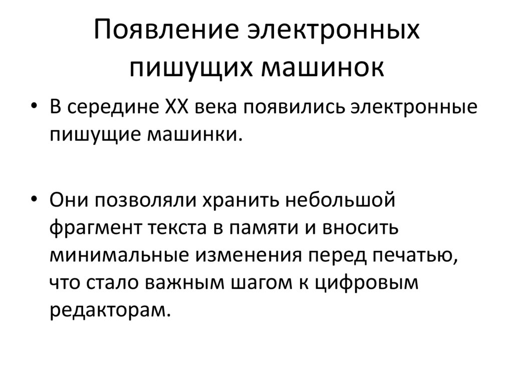 Появление электронныхпишущих машинок