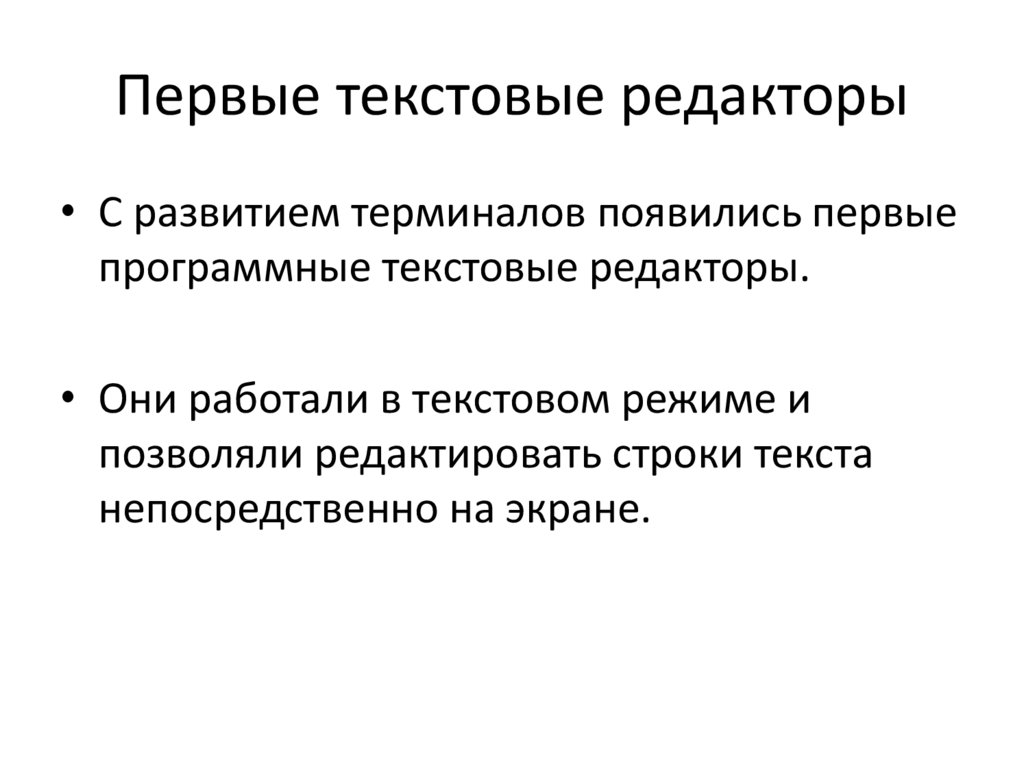 Первые текстовые редакторы• С развитием терминалов появились первые