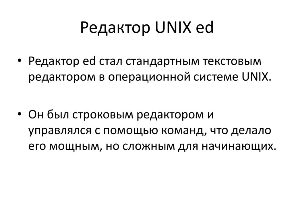 • Он был строковым редактором и
