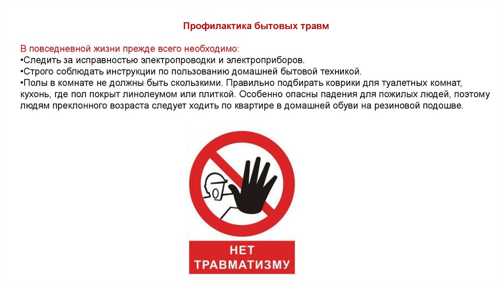 Профилактика бытовых травмВ повседневной жизни прежде всего необходимо: