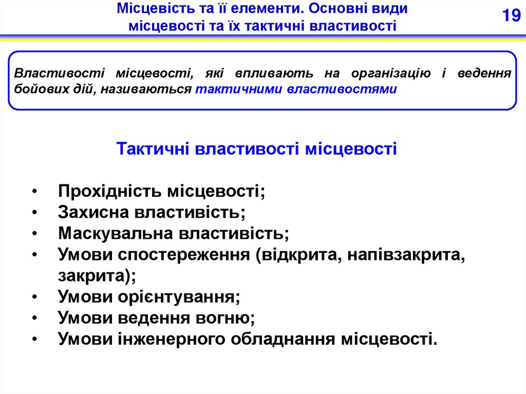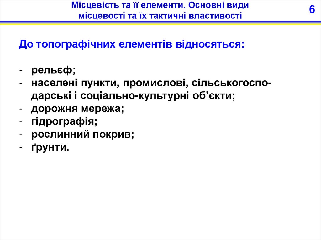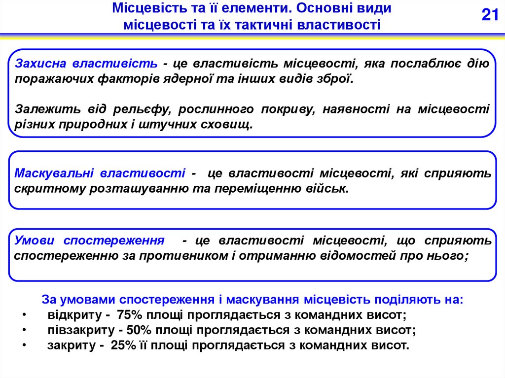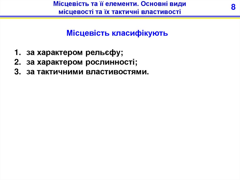 Місцевість та її елементи. Основні видимісцевості та їх тактичні властивості