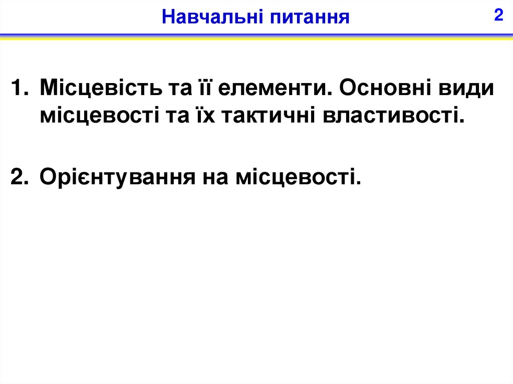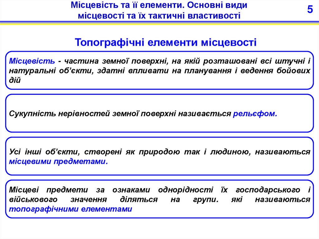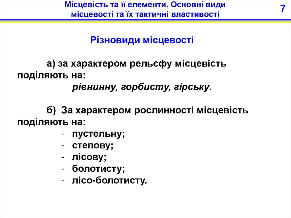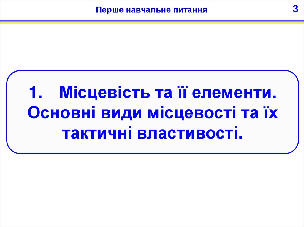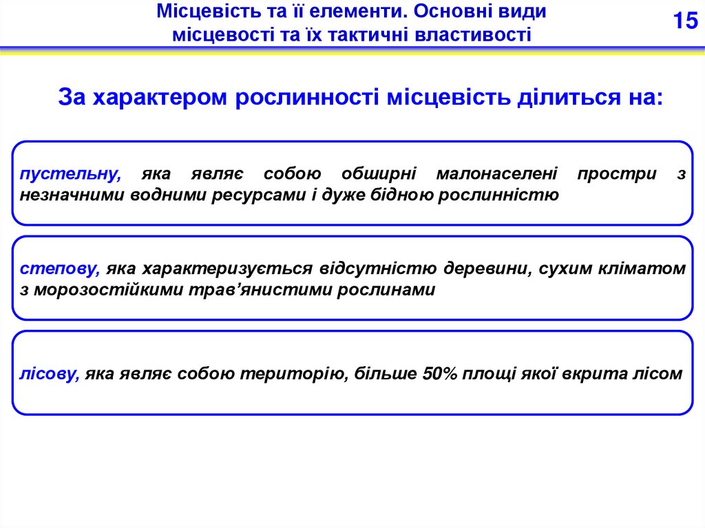Місцевість та її елементи. Основні видимісцевості та їх тактичні властивості