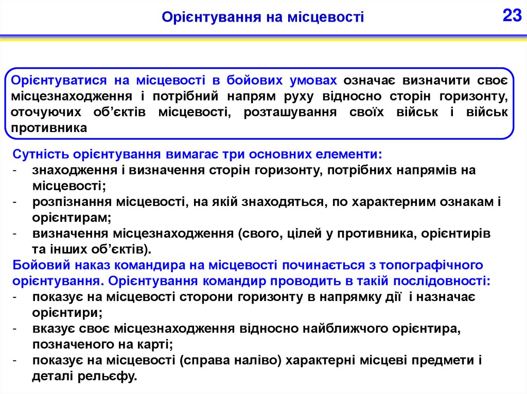 орієнтування. Орієнтування командир проводить в такій послідовності: