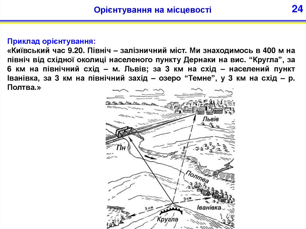 - розпізнання місцевості, на якій знаходяться, по характерним ознакам і