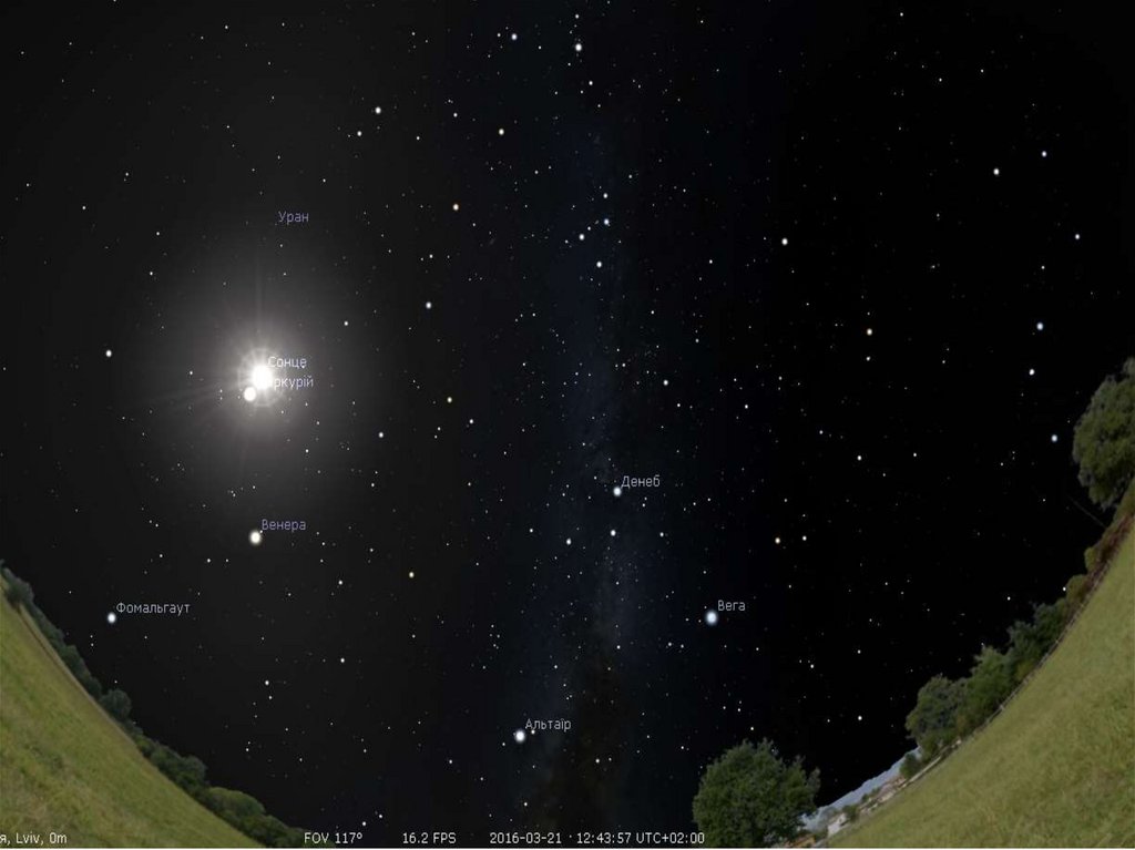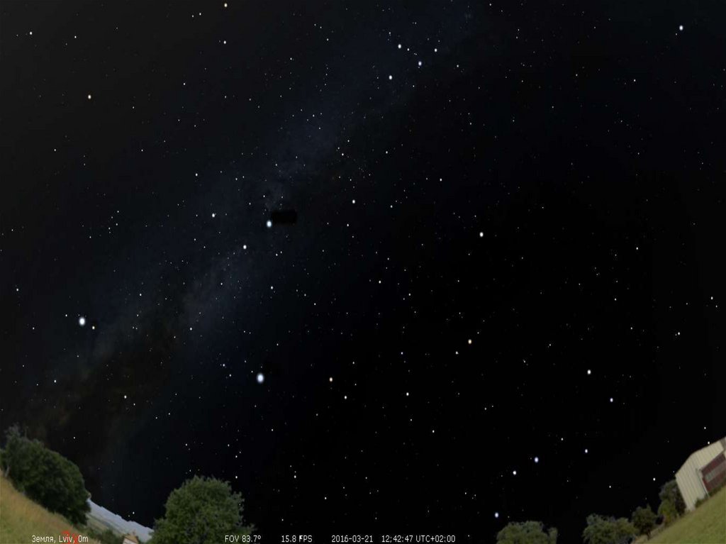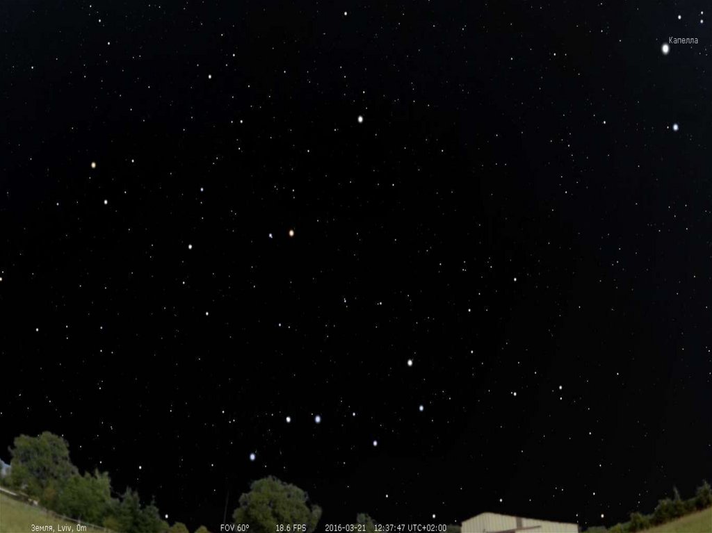 Вночі, якщо стати обличчям до Полярної Зірки, то попереду буде північ (Пн.)