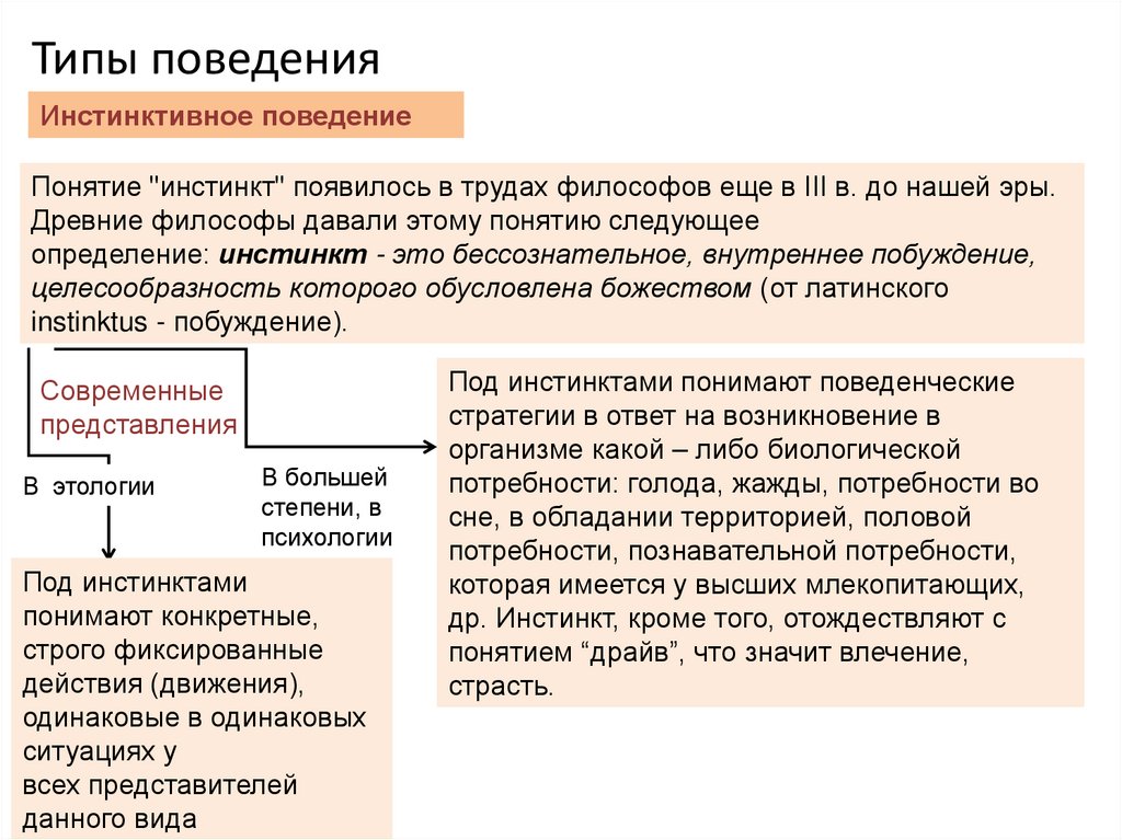 Понятие "инстинкт" появилось в трудах философов еще в III в. до нашей эры.