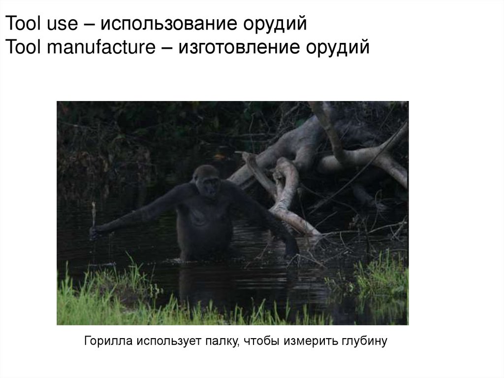 Tool use – использование орудийTool manufacture – изготовление орудий