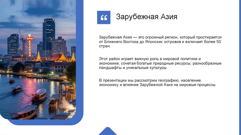 Зарубежная АзияЗарубежная Азия — это огромный регион, который простирается