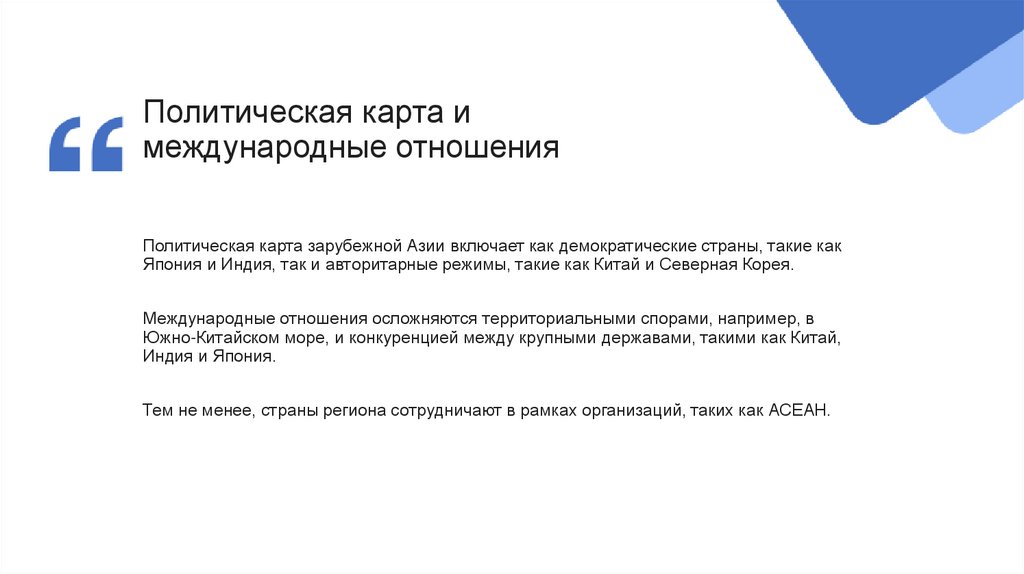 экономику и влияние Зарубежной Азии на мировые процессы.
