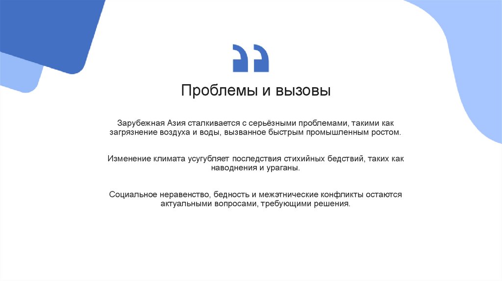 Проблемы и вызовыЗарубежная Азия сталкивается с серьёзными проблемами, такими как