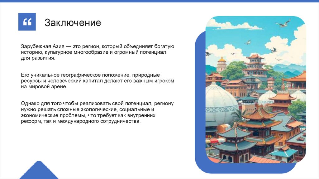 ЗаключениеЗарубежная Азия — это регион, который объединяет богатую