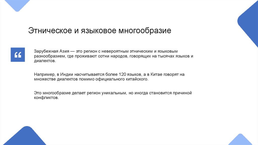Этническое и языковое многообразиеЗарубежная Азия — это регион с невероятным этническим и языковым