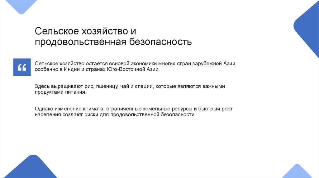 Сельское хозяйство остаётся основой экономики многих стран зарубежной Азии,
