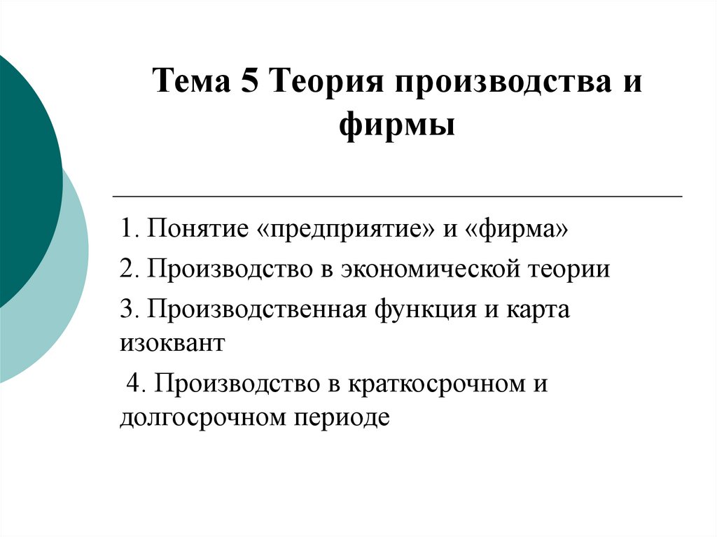 Тема 5 Теория производства и фирмы
