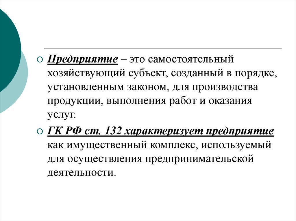 ГК РФ ст. 132 характеризует предприятие
