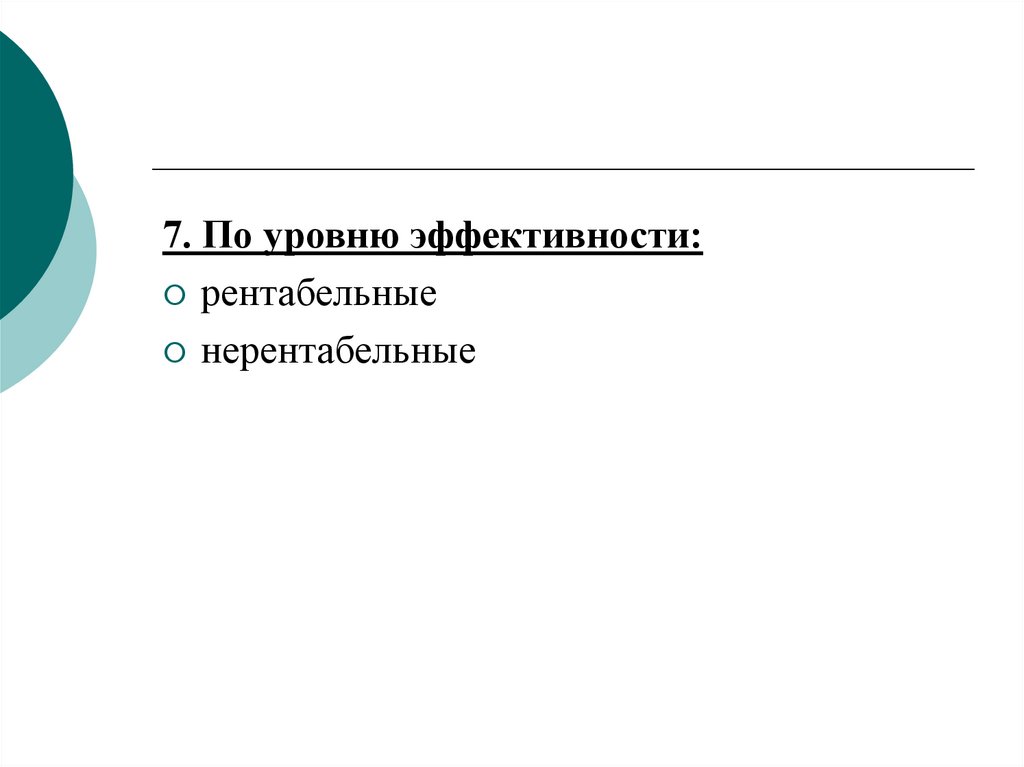 7. По уровню эффективности:рентабельные
