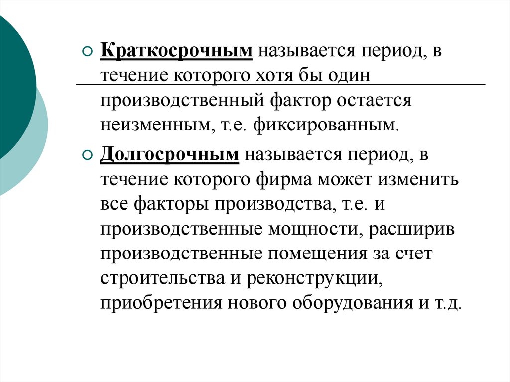 Краткосрочным называется период, втечение которого хотя бы один