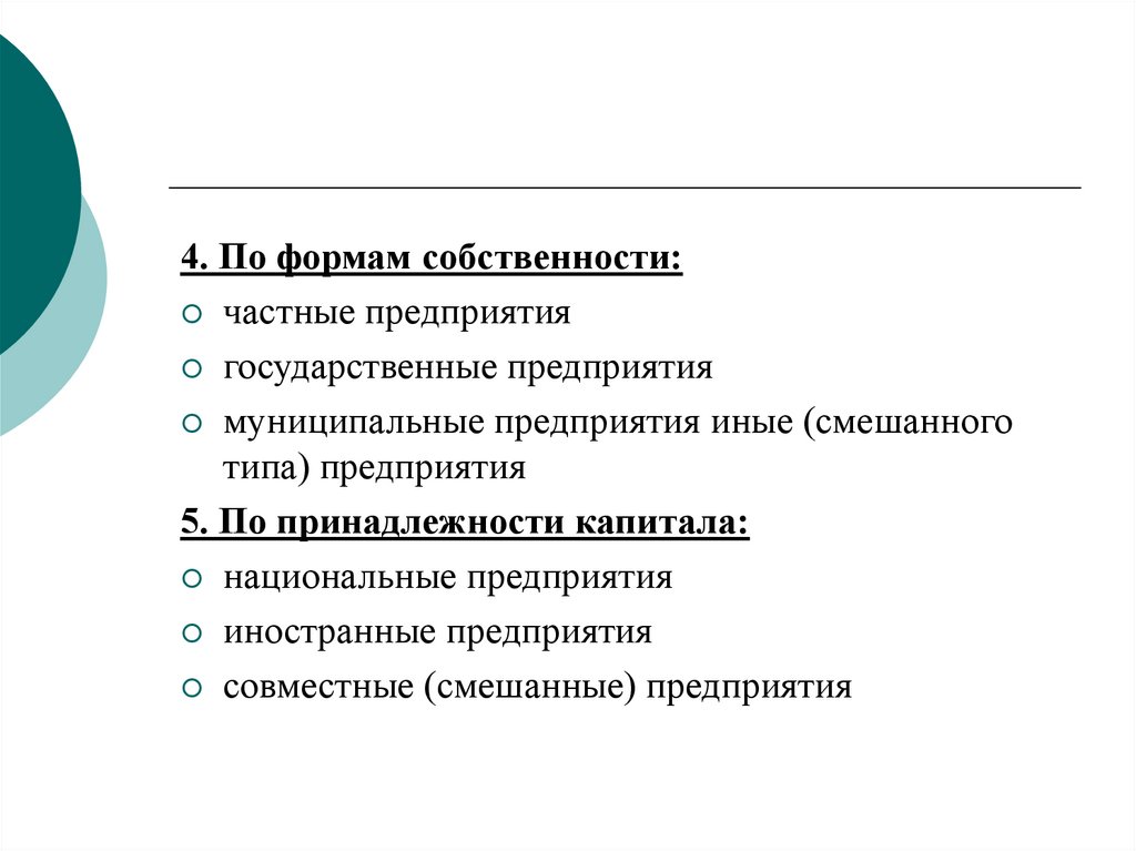 4. По формам собственности:частные предприятия