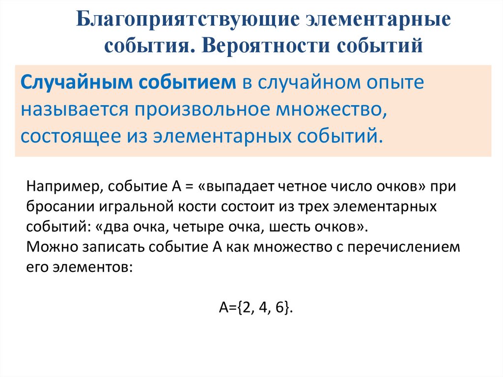Благоприятствующие элементарныесобытия. Вероятности событий