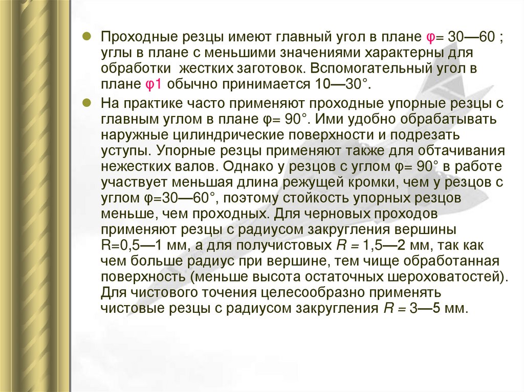 Перед включением подачи резец отвести от детали;это предохранит режущую кромку от выкрашивания;