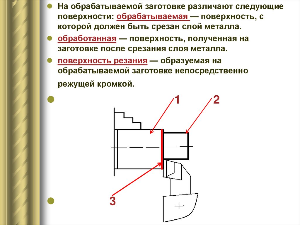 На обрабатываемой заготовке различают следующиеповерхности: обрабатываемая — поверхность, с