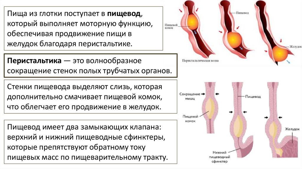 обеспечивая продвижение пищи в