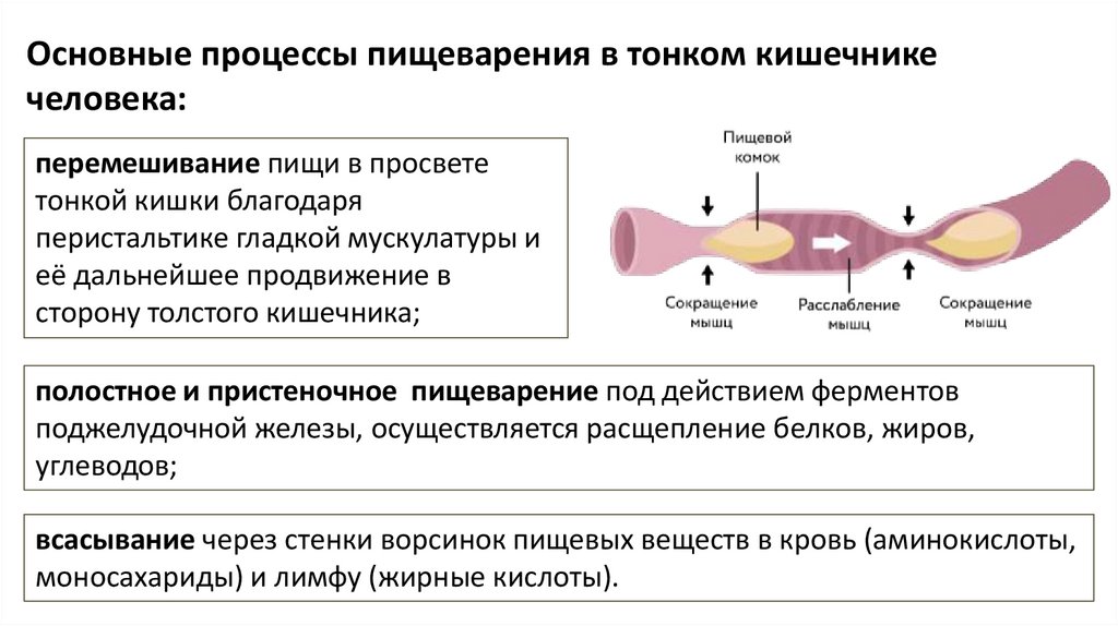 Основные процессы пищеварения в тонком кишечникечеловека: