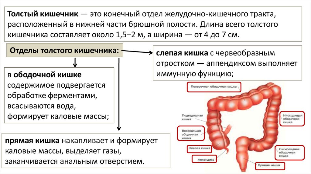 Толстый кишечник — это конечный отдел желудочно-кишечного тракта,расположенный в нижней части брюшной полости. Длина всего толстого