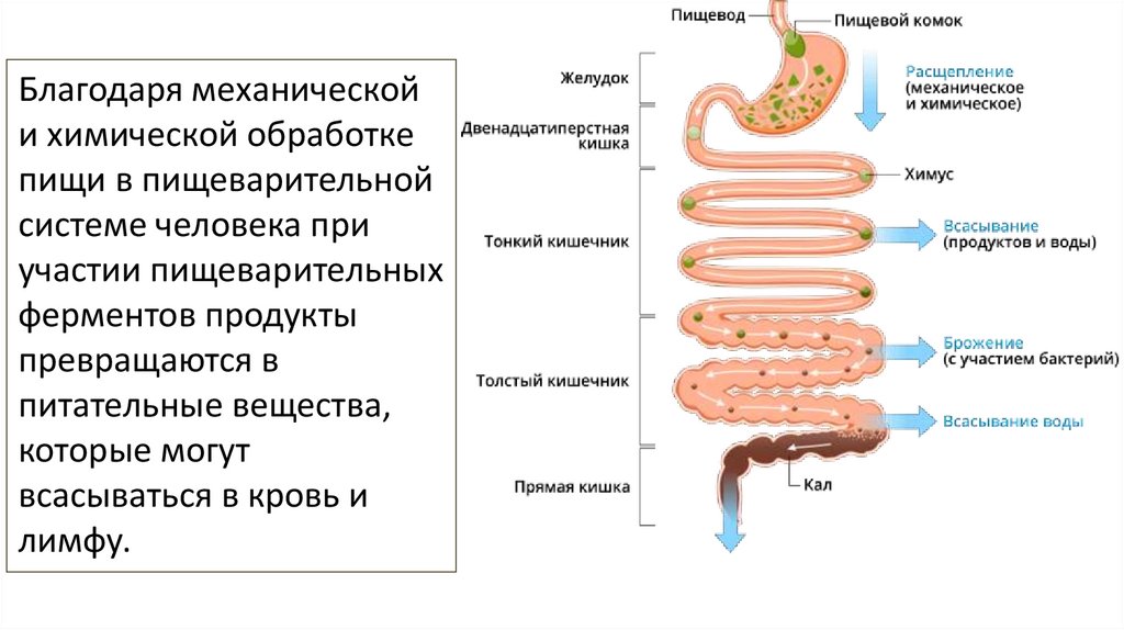 с пищей, на мельчайшие частицы, которые впоследствии