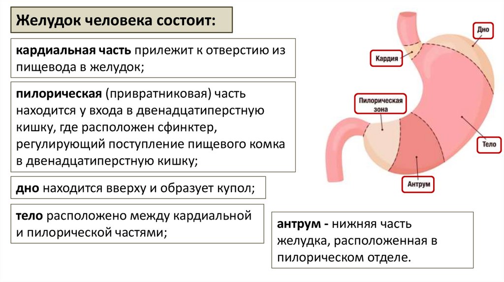 Желудок человека состоит:кардиальная часть прилежит к отверстию из
