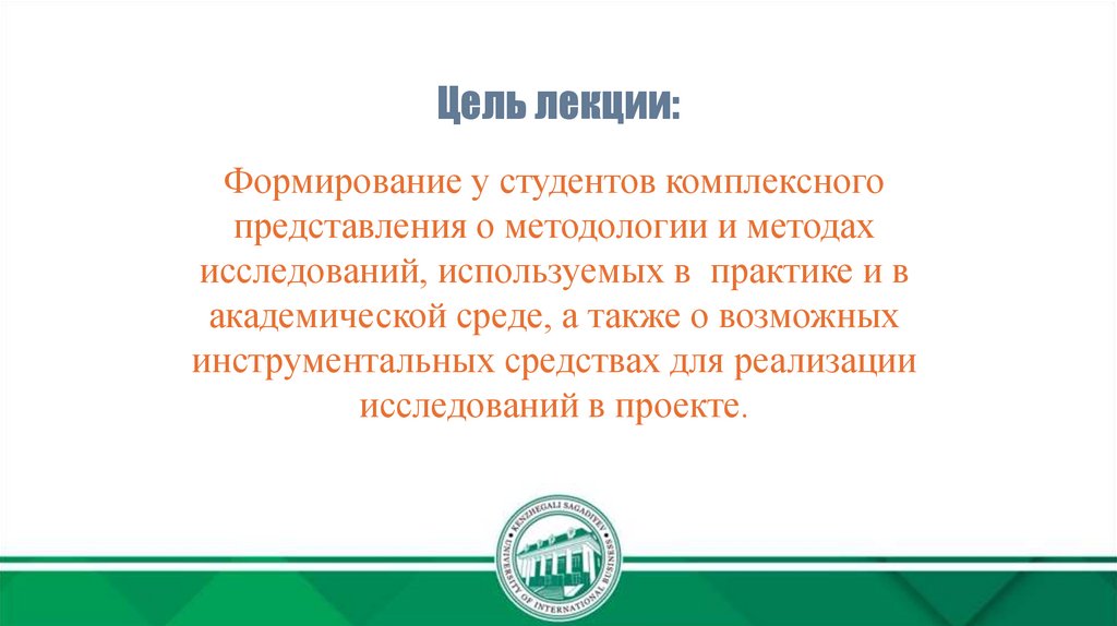 Цель лекции:Формирование у студентов комплексного