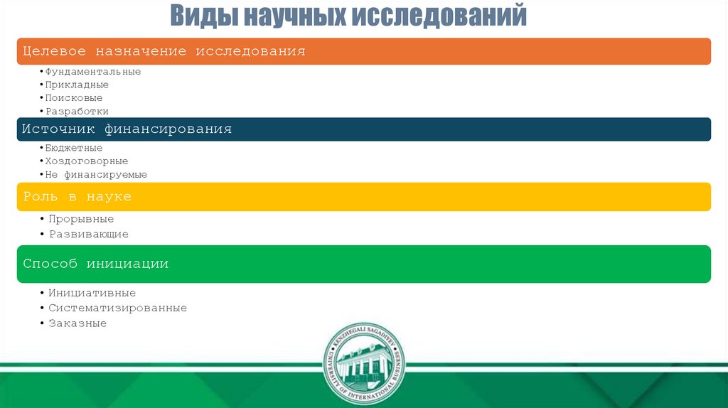 Виды научных исследованийЦелевое назначение исследования
