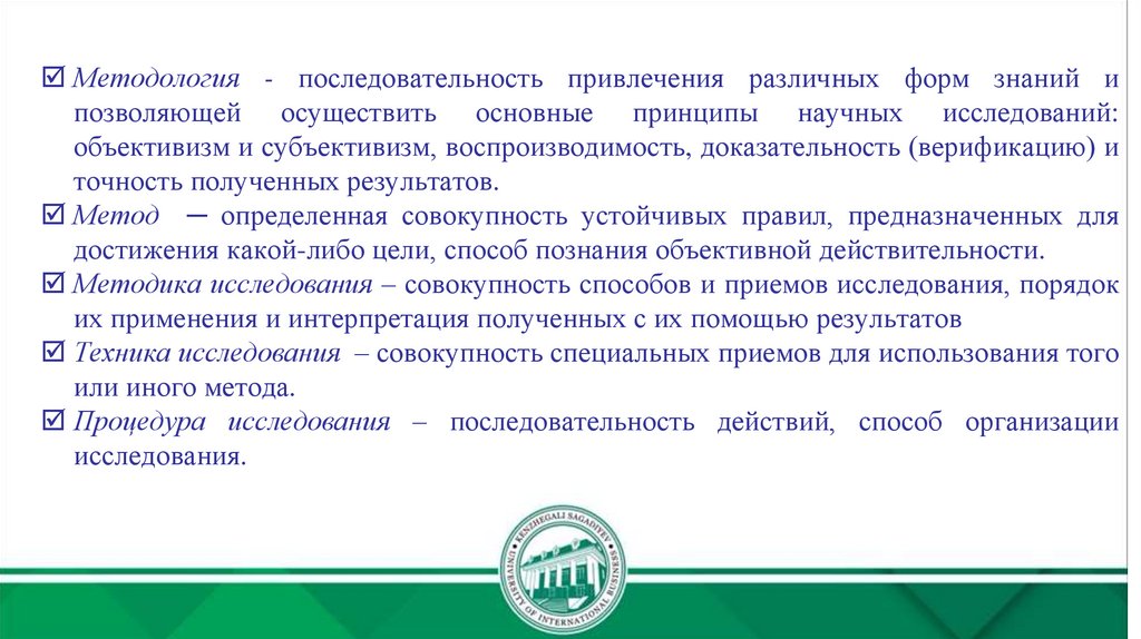 методологических основ проведения исследований, а также проведения