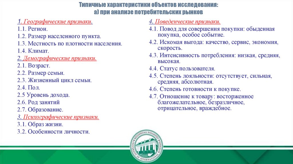 Описательный (дескриптивный) – описание аспектов реальной маркетинговой