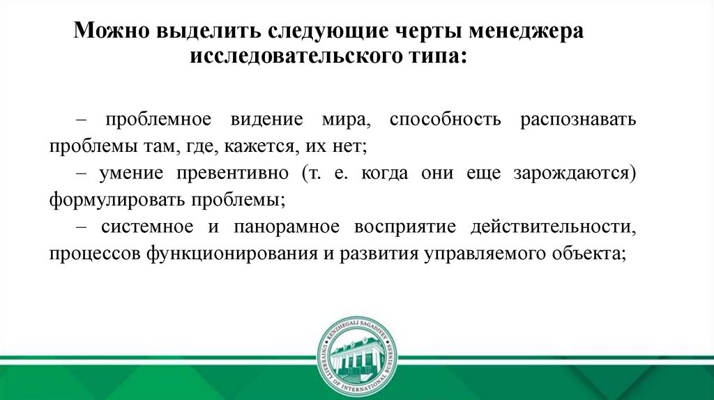 Можно выделить следующие черты менеджераисследовательского типа: