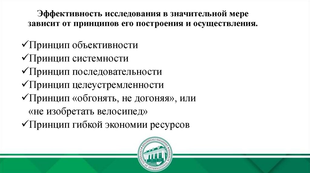 Эффективность исследования в значительной мерезависит от принципов его построения и осуществления.