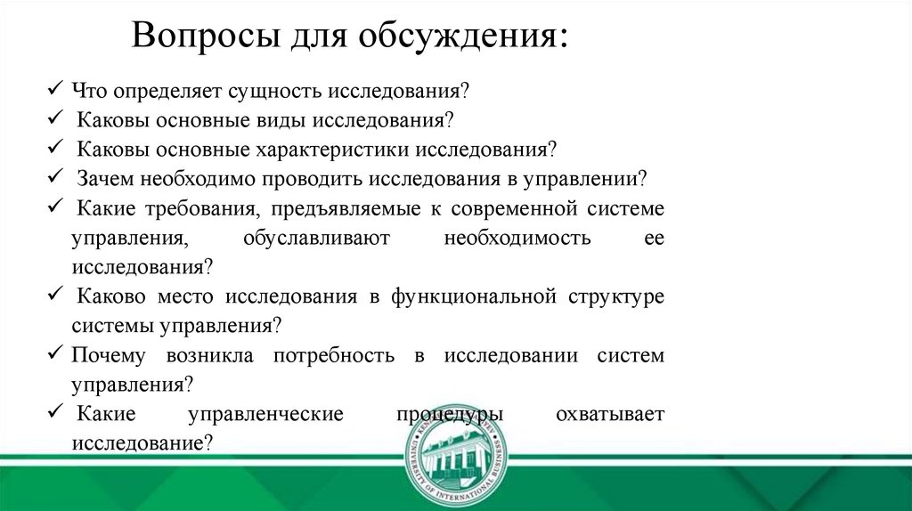Вопросы для обсуждения:Что определяет сущность исследования?