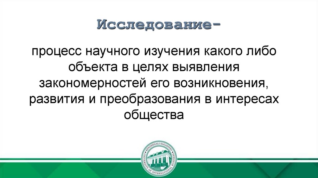 Исследованиепроцесс научного изучения какого либообъекта в целях выявления
