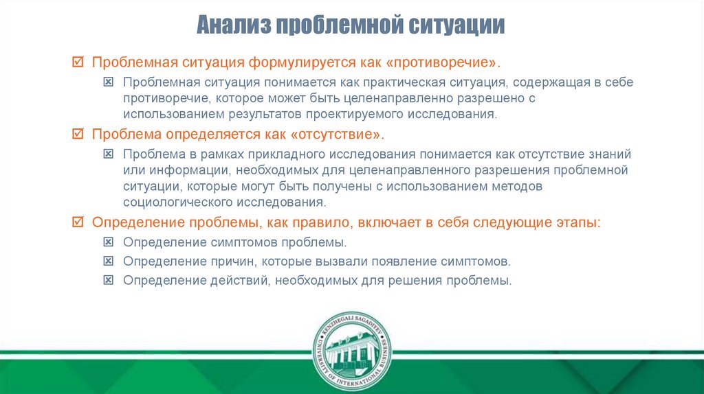 Проблема в рамках прикладного исследования понимается как отсутствие знаний