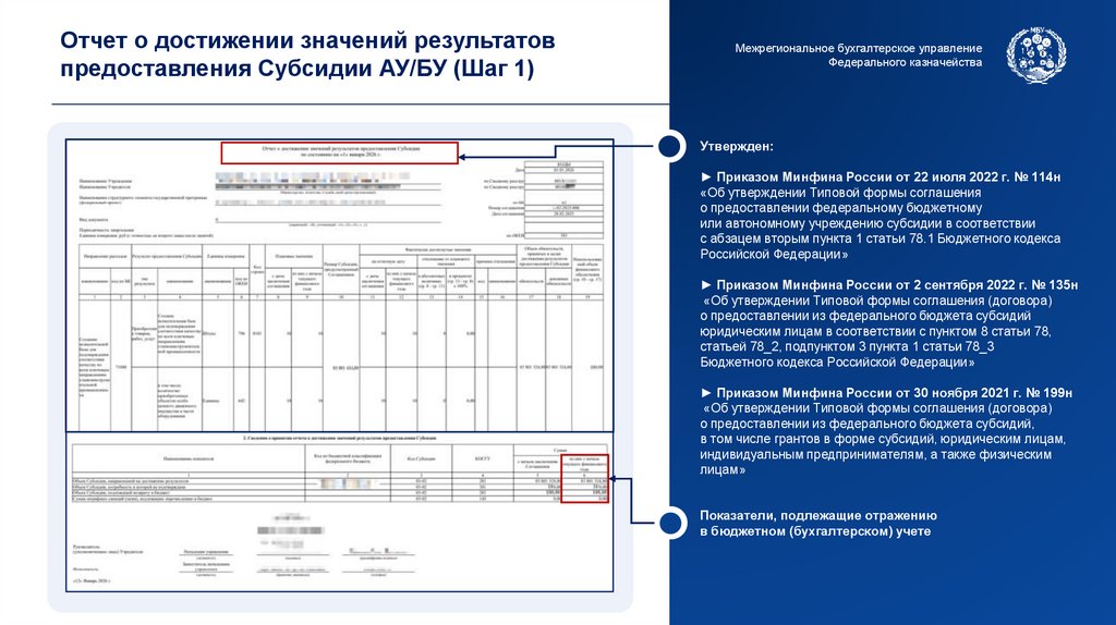 Отчет о достижении значений результатовпредоставления Субсидии АУ/БУ (Шаг 1)