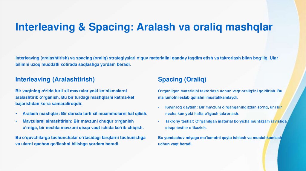 Qayta aloqa: Har bir mikro-moduldan so‘ng tezkor qayta aloqa