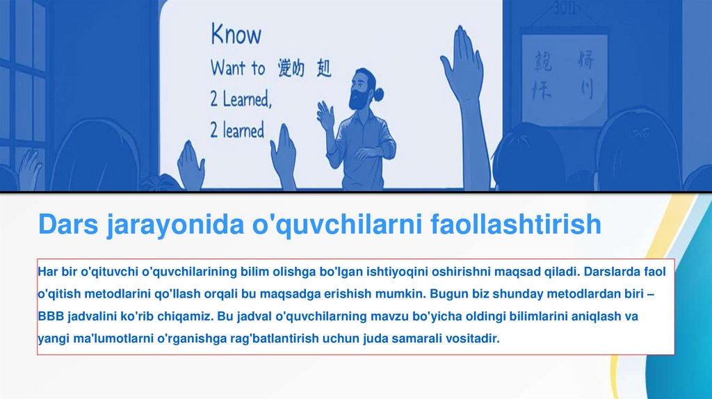 o‘quvchilarning faolligini taʼminlash va ularning bilimini aniq