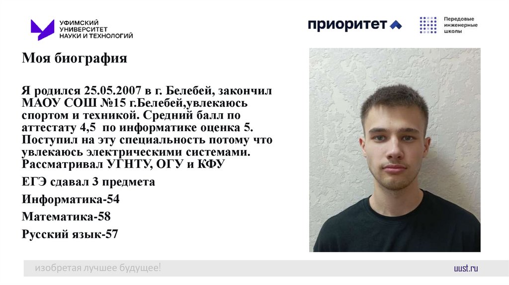 Моя биографияЯ родился 25.05.2007 в г. Белебей, закончил