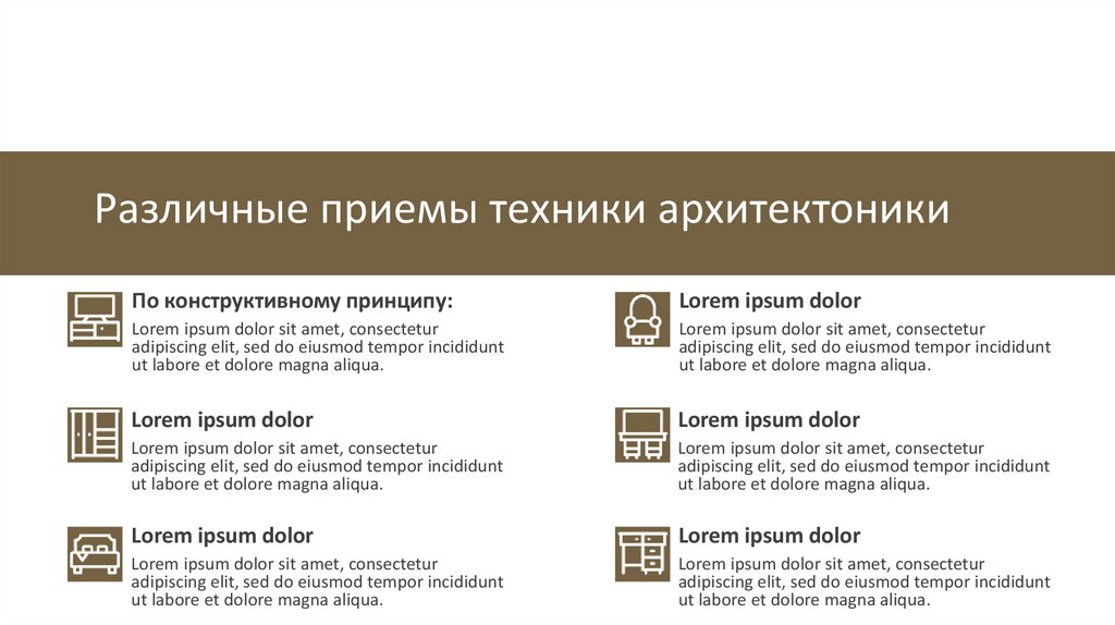 Различные приемы техники архитектоникиПо конструктивному принципу: