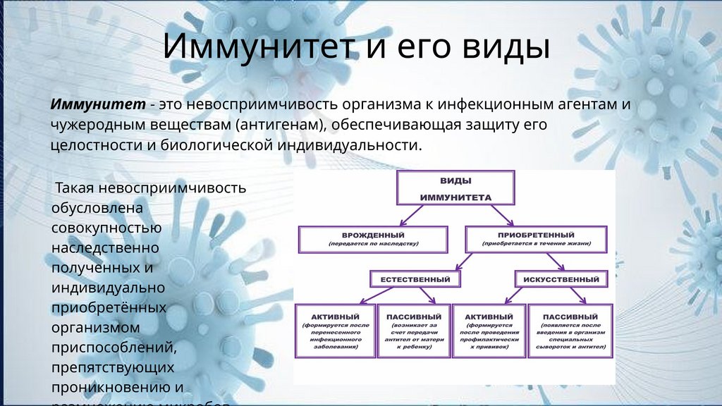 Иммунитет и его видыИммунитет - это невосприимчивость организма к инфекционным агентам и
