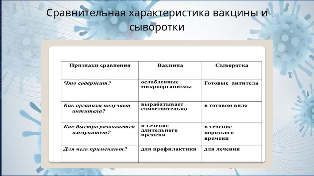 Сравнительная характеристика вакцины исыворотки