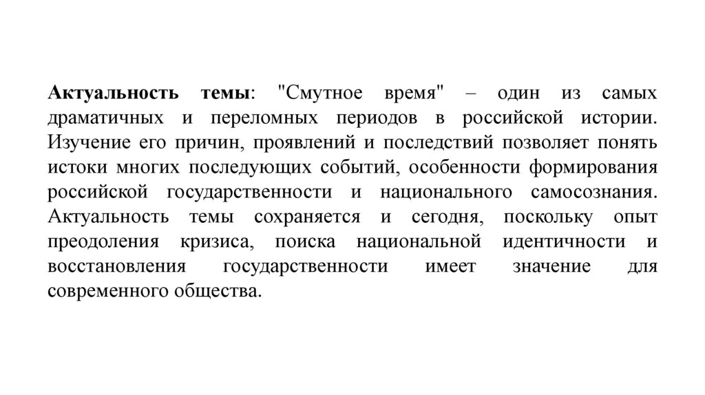 Актуальность темы: "Смутное время" – один из самыхдраматичных и переломных периодов в российской истории.