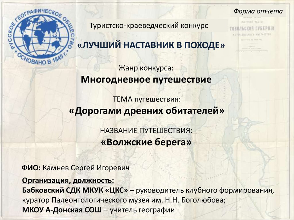 НАЗВАНИЕ ПУТЕШЕСТВИЯ«Волжские берега»